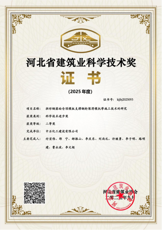 近日,我公司自主研發的拱形鋼筋砼倉頂模板支撐鋼桁架滑模托帶施工技術的研究榮獲河北省建筑業科學技術二等獎。河北省建筑業科學技術獎是公司首次榮獲,此次獲獎是公司施工技術領域持續創新的結果,也是公司技術研發實力的綜合體現。